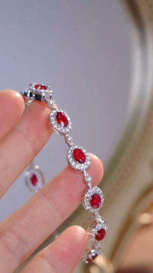 18k Gold Bracelet, Ruby Bracelet, Oval Ruby 5.00ct, Natural Diamond 2.00ct