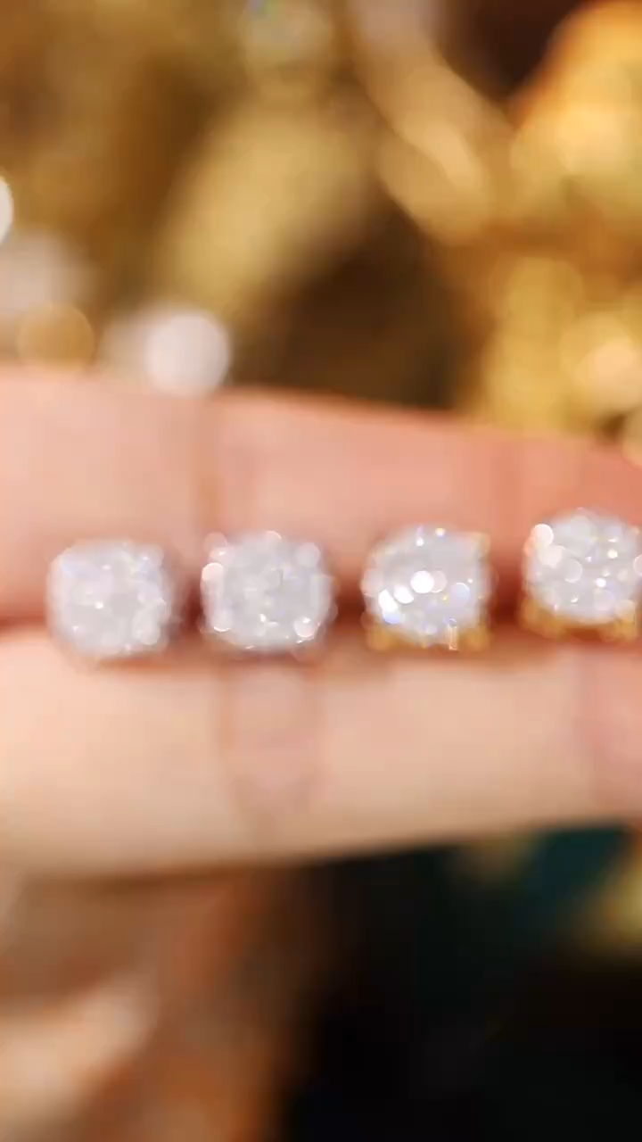 18k Gold Earring Studs with Bull Head Design; Diamond Insert of 0.50 ct Set in a Hidden Mount