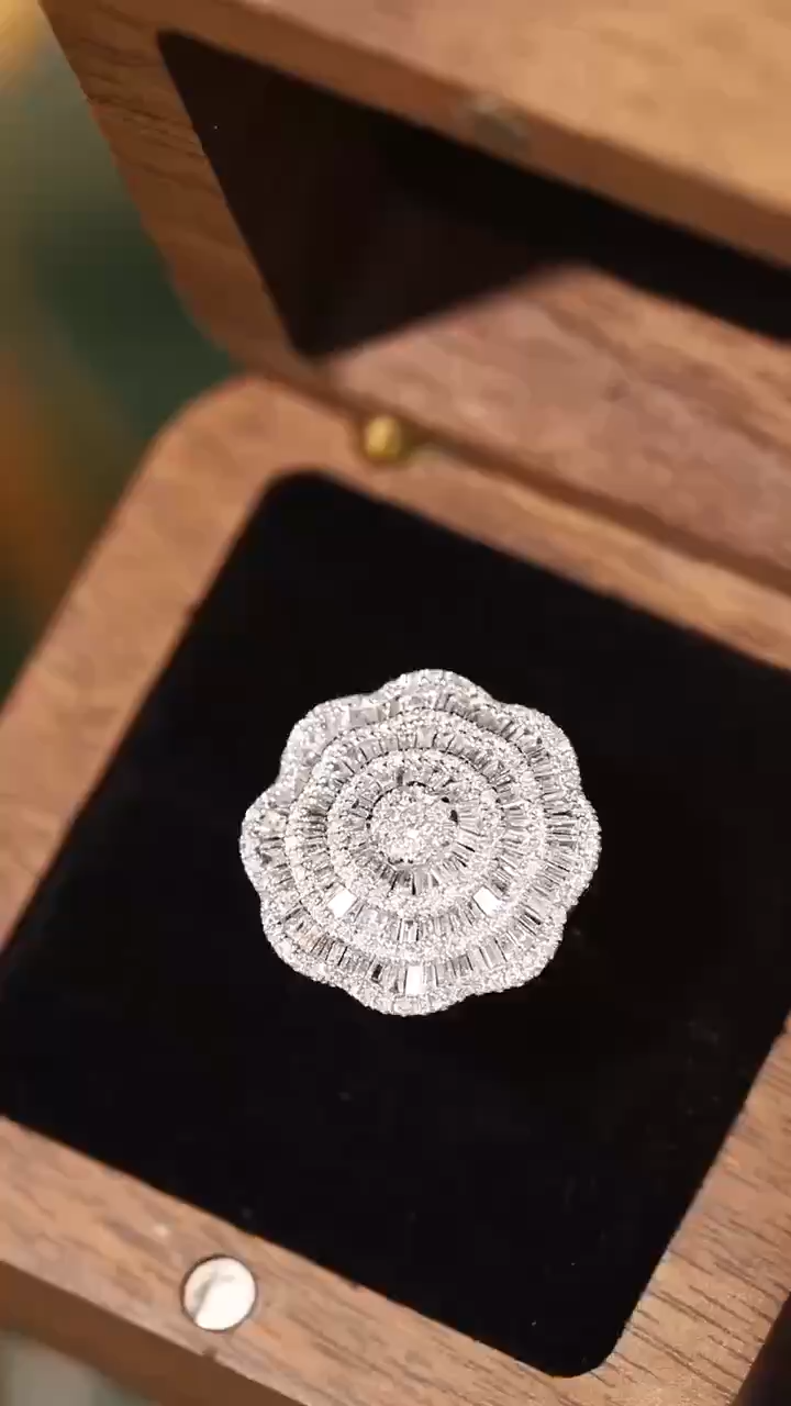 18k gold ring set with a natural diamond; the diamond features a Tapered Baguette cut and weighs 1.50carats.