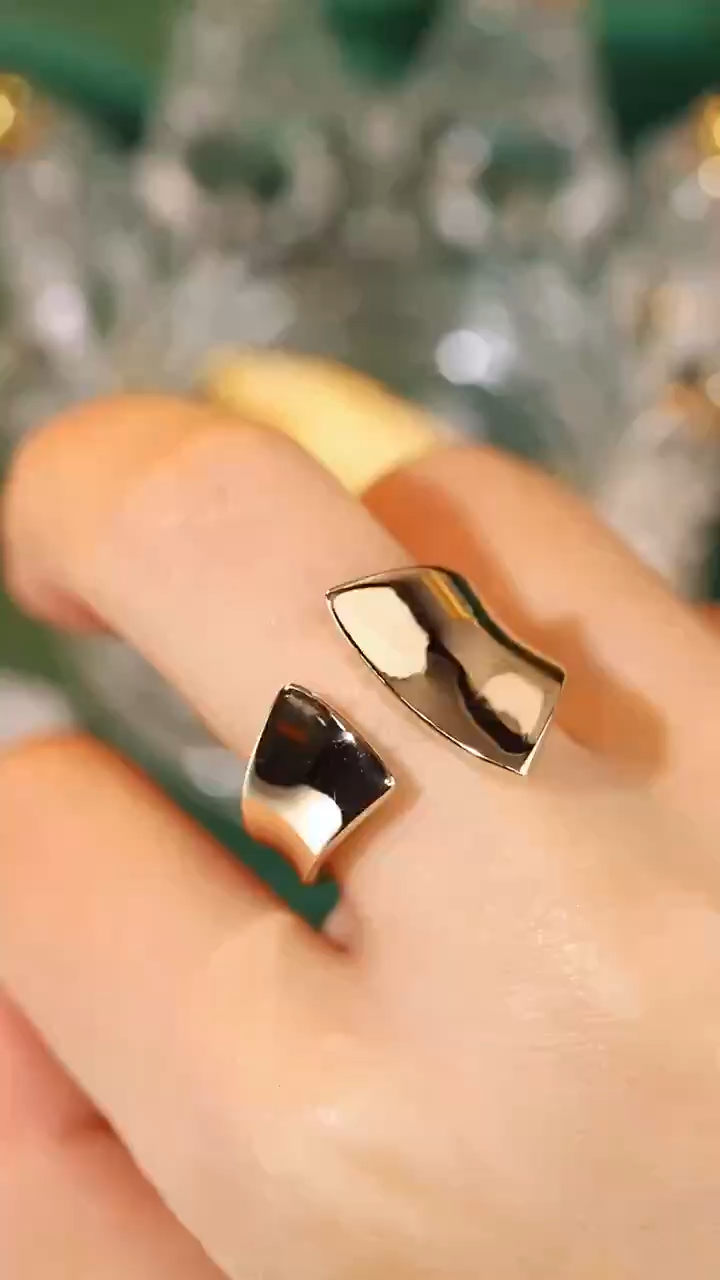 18K gold 3D hard gold environmentally friendly electroplated hollow plain gold asymmetrical open ring