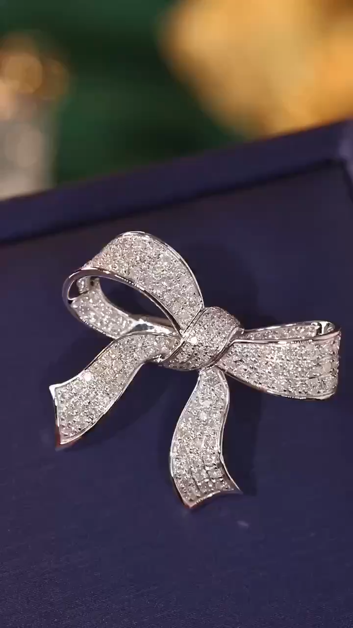 18K Gold Brooch and Pendant, Dual-Purpose Design, Bow-Shaped, Inlaid with 1.05ct Natural Diamond