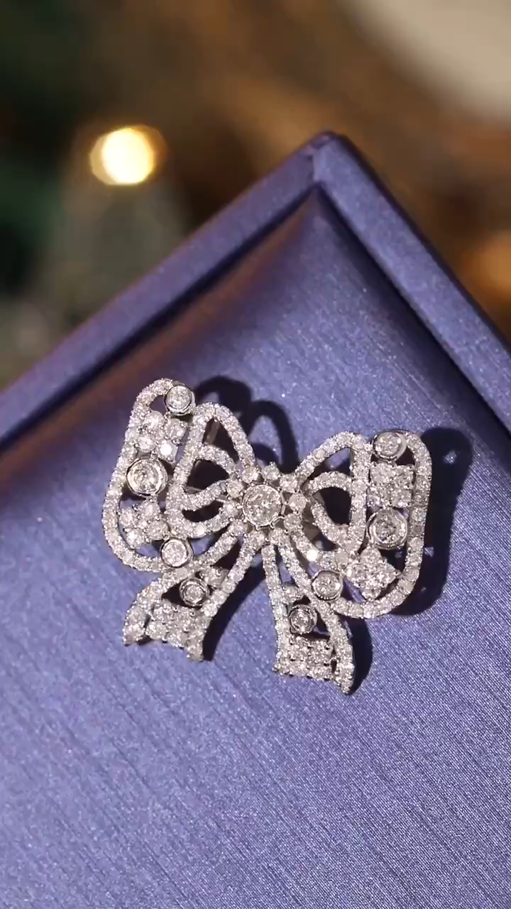 18K Gold Brooch and Pendant, Dual-Purpose Design, Bow-Shaped, Inlaid with 1.50ct Natural Diamond