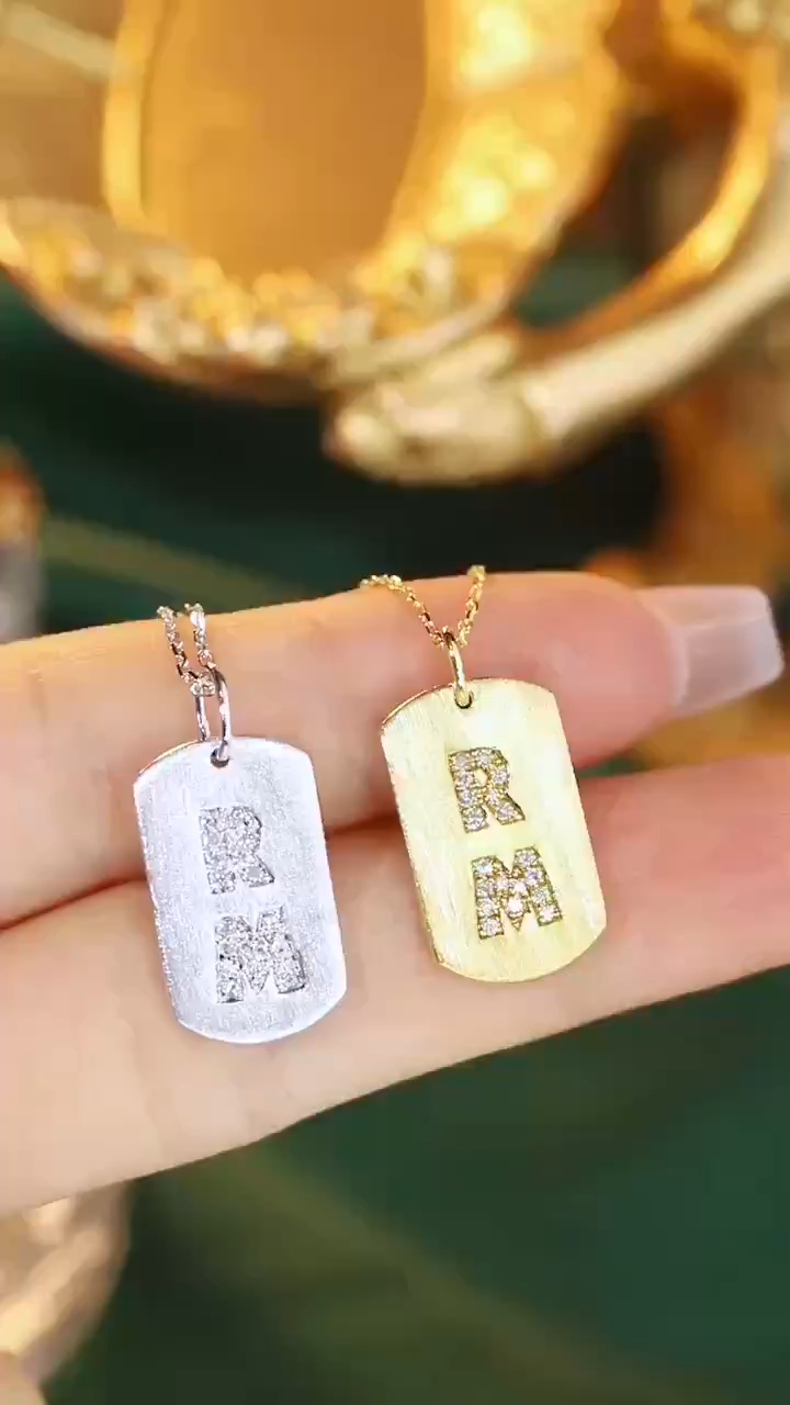 18k Gold Diamond Necklace with Letter Pendant, Customized Name, Natural Diamond 0.10ct