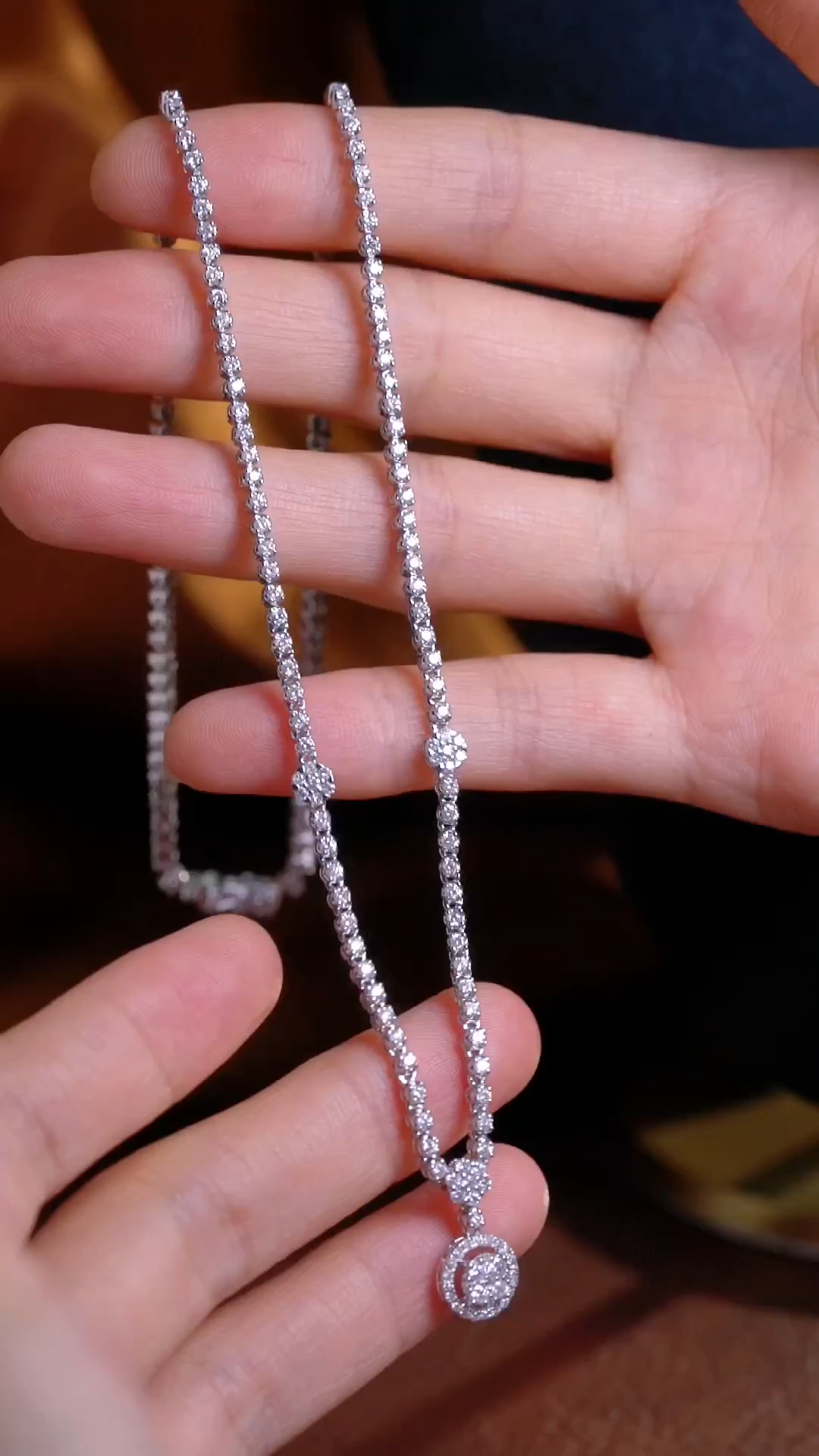 18k Gold Necklace with Luxury Diamond-Set Evening Gown Chain; Natural Diamonds totaling 3.3ct