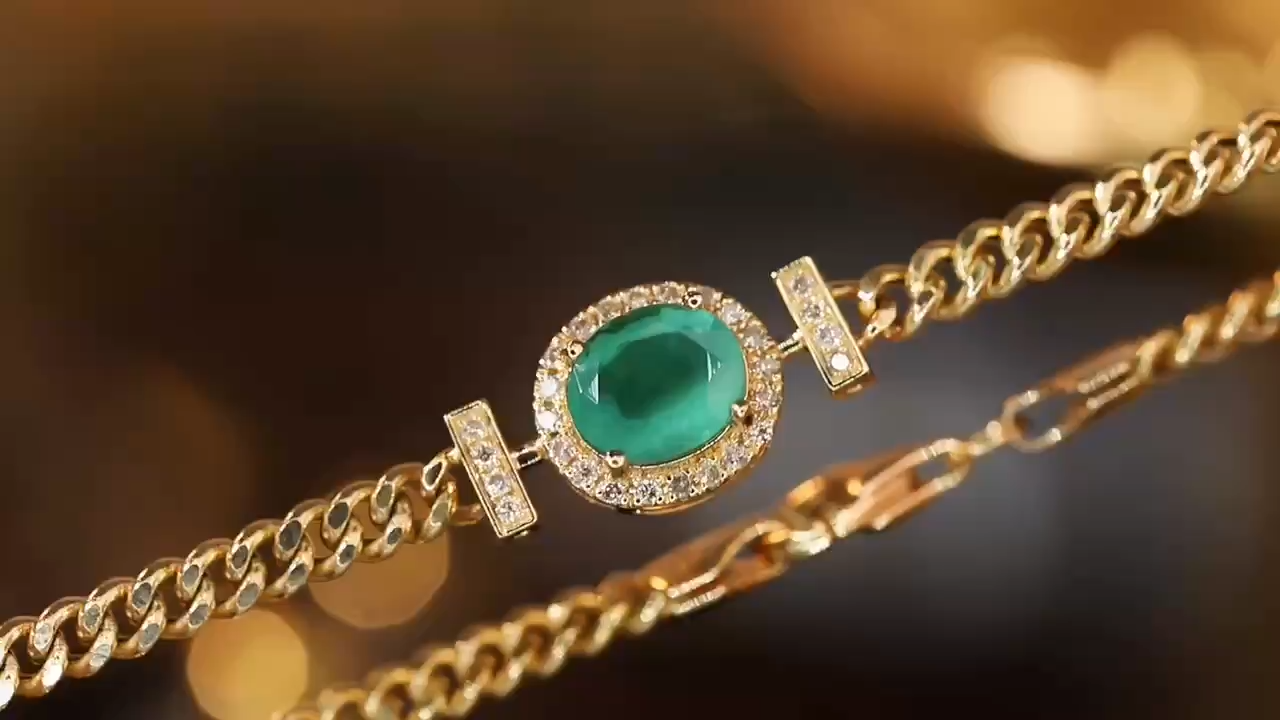 18k Gold Bracelet, Luxurious Diamond-Studded Bracelet, Emerald Bracelet with 1.15ct Diamonds