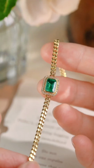 18k Gold Bracelet, Luxurious Diamond-Studded Bracelet, Emerald Bracelet with 1.50ct Diamonds