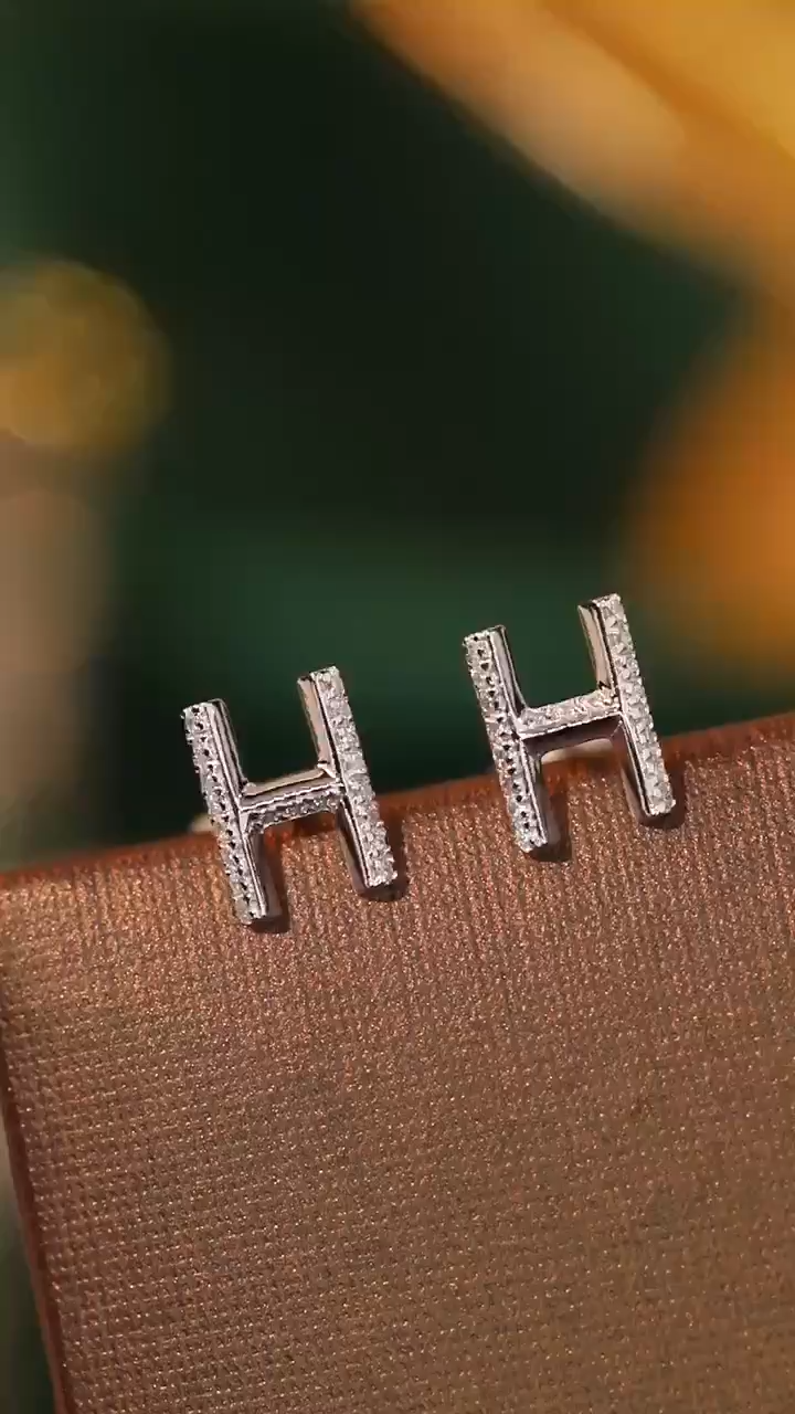 18k gold earring stud with the letter “H” and a 0.08ct natural diamond inlaid.